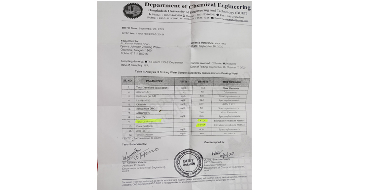 বিশুদ্ধ পানিতে ক্ষতিকারক ক্লোরিফ্রম ব্যাকটেরিয়া এবং মলযুক্ত পানির অসিত্ব