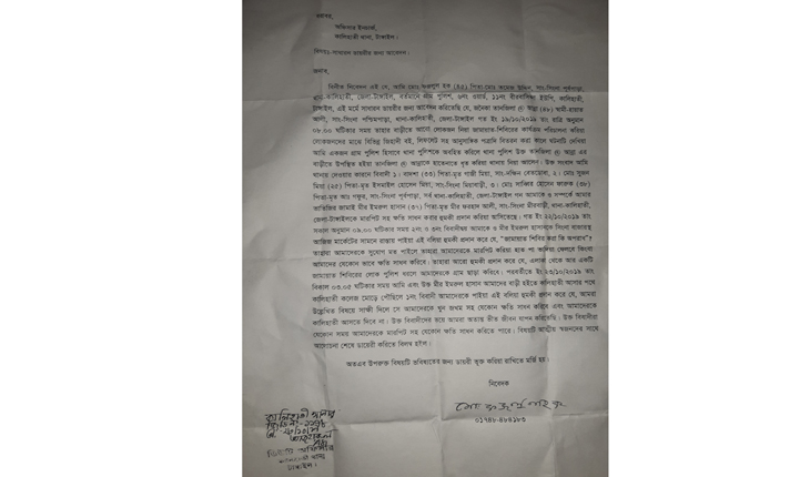 ডায়েরীর বিবরণে জানাযায়, গত ১৯ অক্টোবর সিংনা পশ্চিমপাড়া হায়াত আলীর স্ত্রী তানজিলা ওরফে আন্না(৪৮) রাতে তার বাড়ীতে লোকজন নিয়ে জামায়াত-শিবিরের কার্যক্রম পরিচালনা করে লোকজনদের মাঝে বিভিন্ন জিহাদী বই, লিফলেটসহ আনুসাঙ্গিক পত্রাদি বিতরণ করা কালে একজন গ্রাম পুলিশ হিসেবে ফজলুল হক থানা পুলিশকে বিষয়টি অবহিত করলে পুলিশ ঘটনাস্থল থেকে তানজিলা ওরফে আন্নাকে হাতেনাতে গ্রেফতার করে থানায় নিয়ে আসে। থানায় খবর দেওয়ার কারণে ওই গ্রাম পুলিশসহ তার ভাতিজির জামাই মীর ইমরুল হাসান(৩৭)কে উপজেলার দক্ষিণ বেতডোবা গ্রামের মৃত গাজী মিয়ার ছেলে বাদশা(৩৩),সিংনা মিয়াবাড়ী গ্রামের মৃত ইসমাইল হোসেন মিয়ার ছেলে সুজন মিয়া(২৫), সিংনা পূর্বপাড়া গ্রামের মৃত আব্দুল গফুরের ছেলে সাব্বির হোসেন ফারুক(৩৮) মারপিটসহ ক্ষতি সাধন করার হুমকি প্রদান করে আসছে।